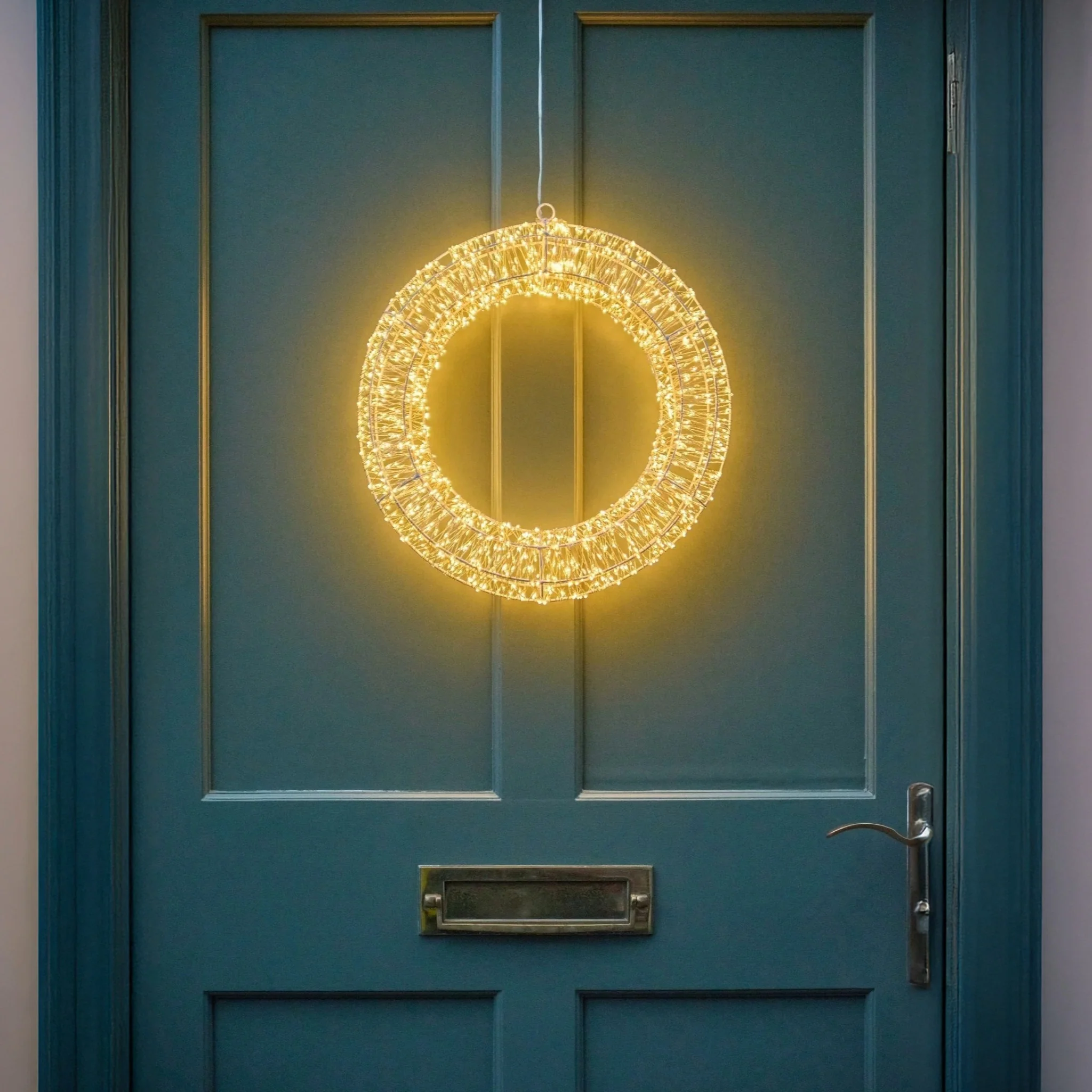 Bring a touch of radiant elegance to your holiday décor with the Celestial Wreath by H Potter, a stunning fusion of modern design and timeless lighting. Choose between a handcrafted copper or silver gleaming metal frame that is softly illuminated by 960 warm white LED lights, this wreath adds a refined shimmer to your home throughout the festive season.