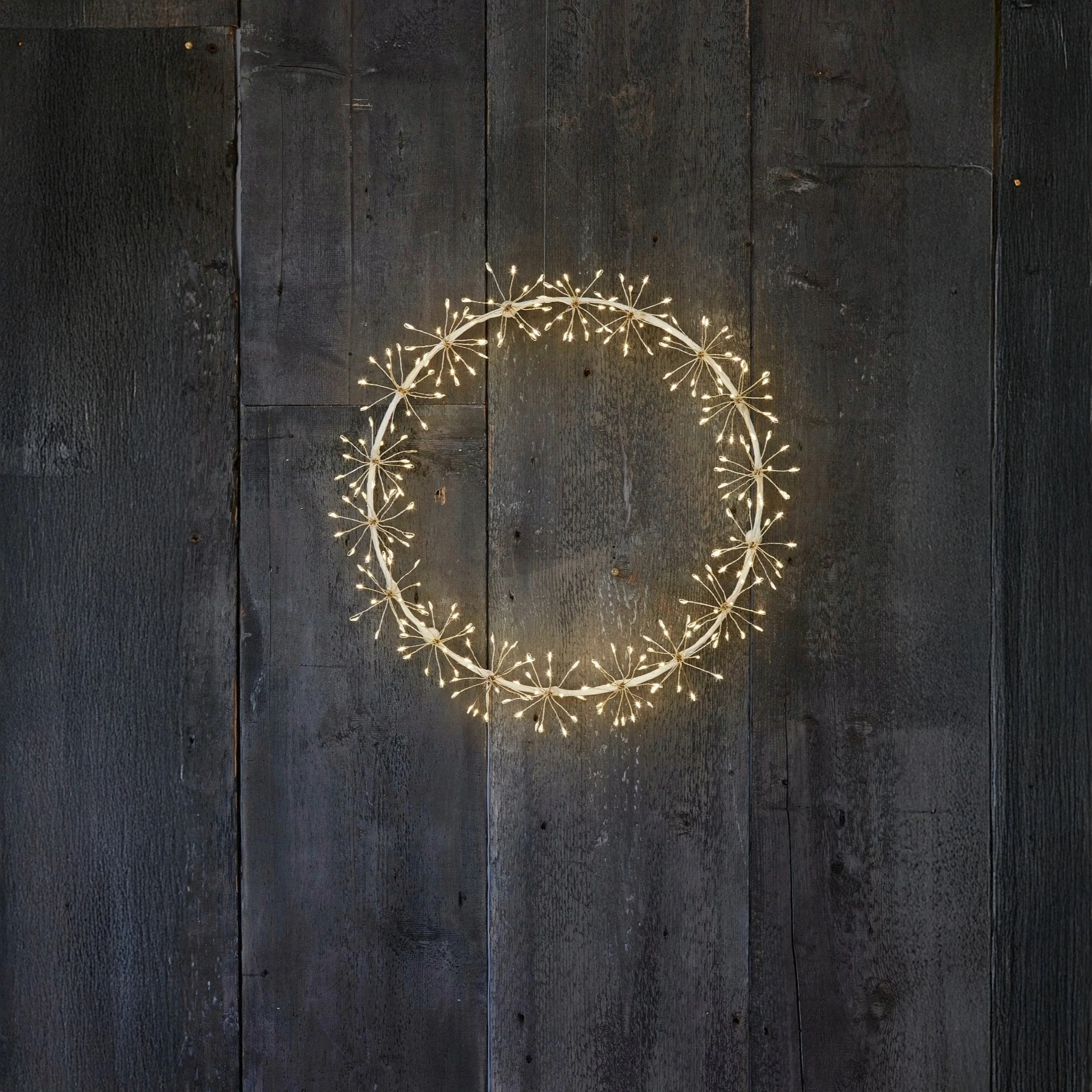 Capture the quiet grace of winter with this one of a kind piece from H Potter. The Starlight Wreath transforms any space, from entryways and mantels to windows and interior walls into a scene of graceful illumination. The sturdy frame provides a contemporary silhouette, while the delicate cast a welcoming, golden glow.