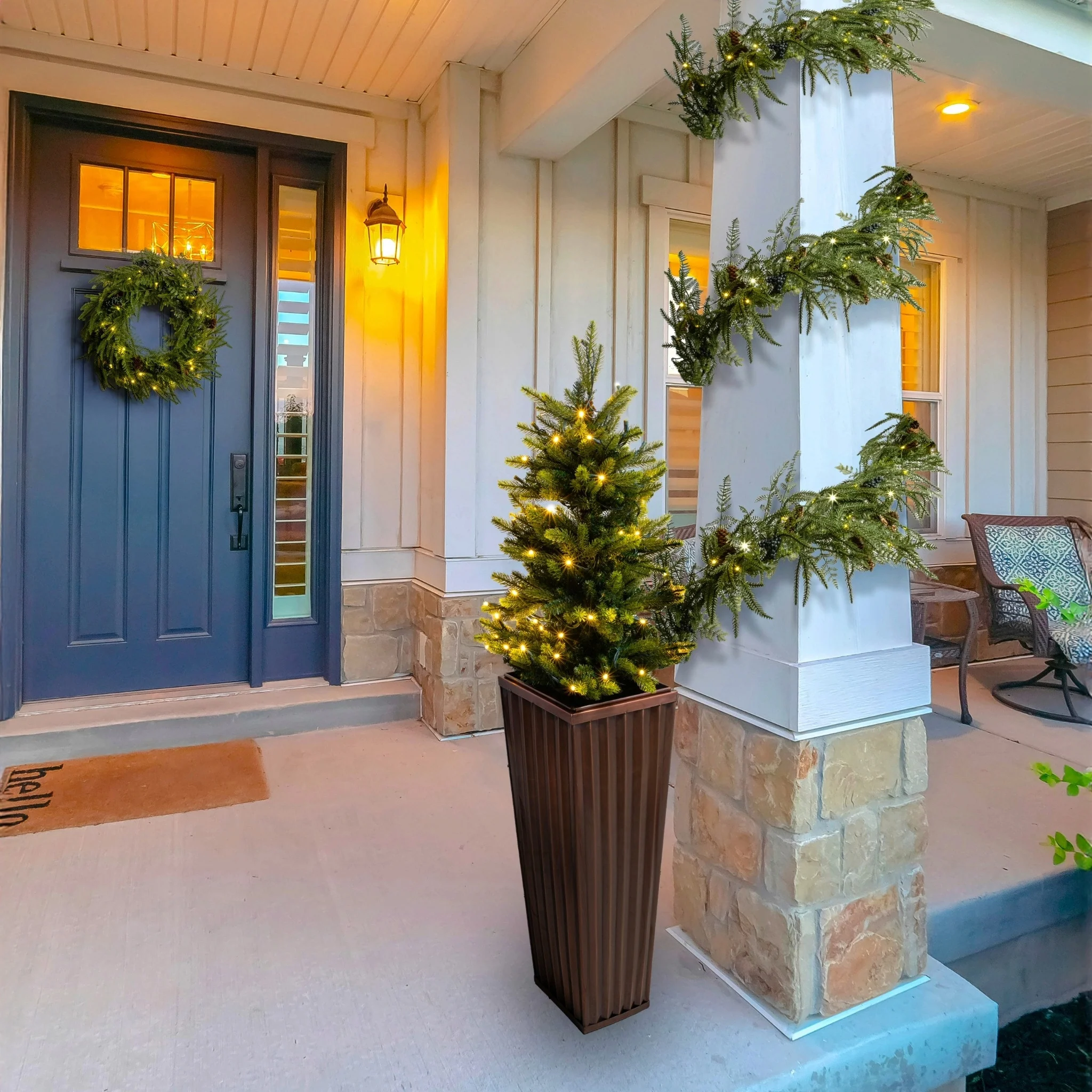 Each faux Winter light Tree includes a ground stake for quick installation directly into soil or decorative planters. Simply plug it in for an instant display of soft, warm light. Designed for both festive decorating and subtle outdoor ambiance, it’s the perfect way to bring gentle illumination to your home exterior.