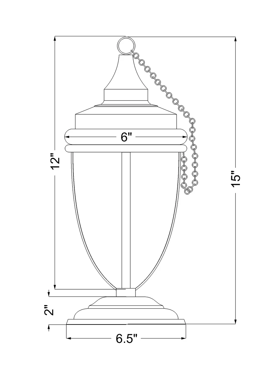 Each tabletop torch includes a matching brass chain, snuffer cap, high-end wick, and an insert for torch oil. Torch oil is not included.